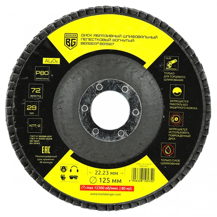 Диск абразивный шлифовальный лепестковый вогнутый (125x22.23 мм, P80) BERGER BG1567