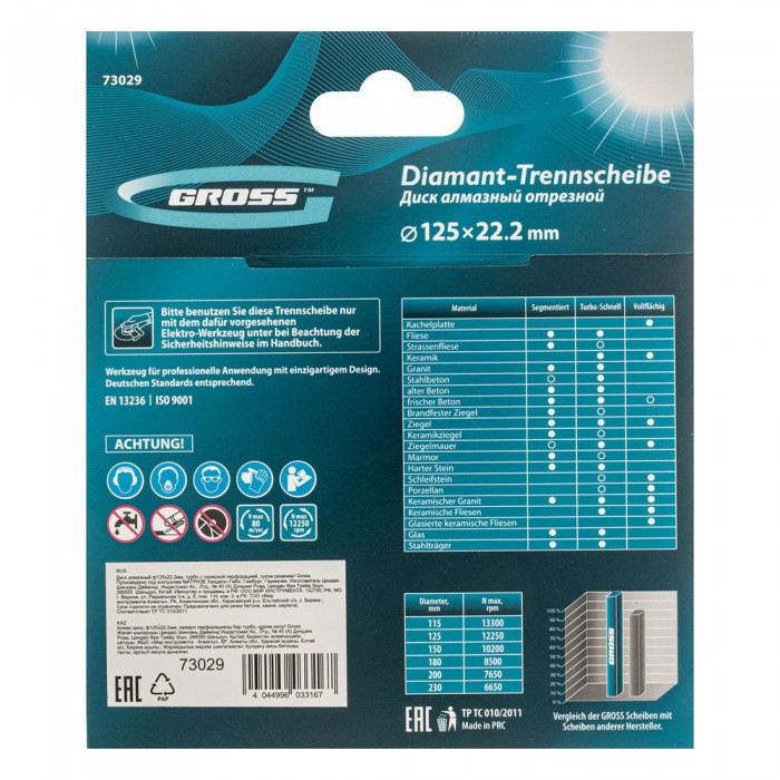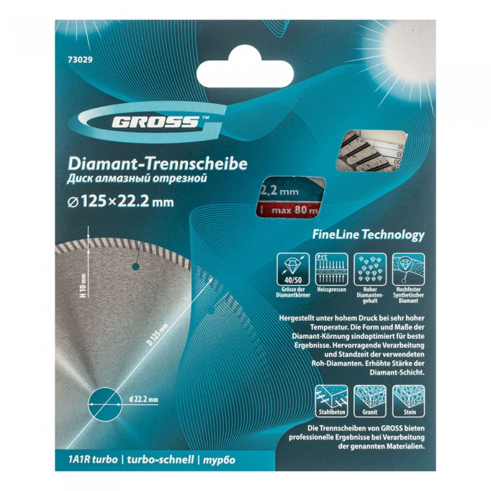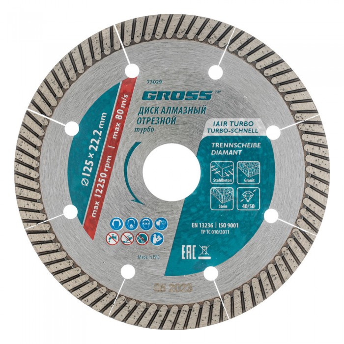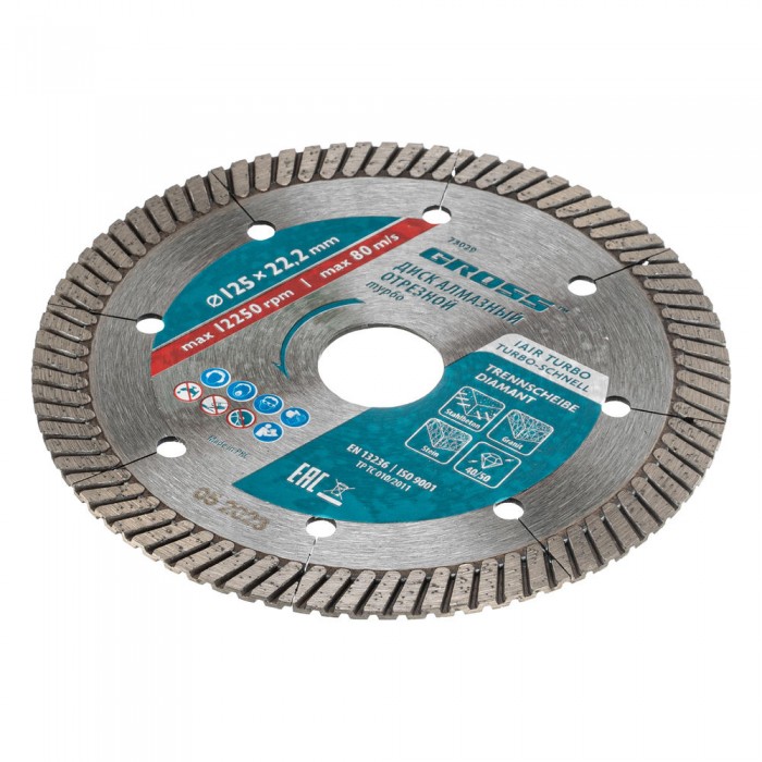 Диск алмазный, 125 х 22.2 мм, турбо с лазерной перфорацией, сухая резка Gross (73029)