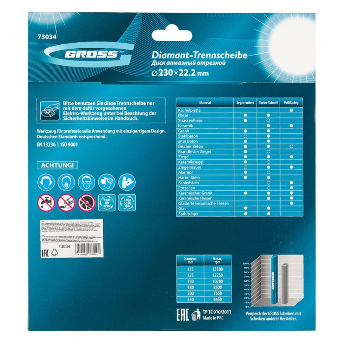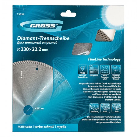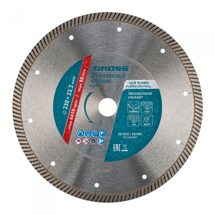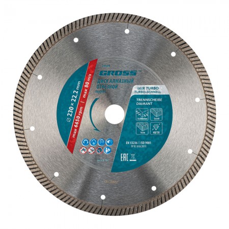 Диск алмазный, 230 х 22.2 мм, турбо с лазерной перфорацией, сухая резка Gross (73034)