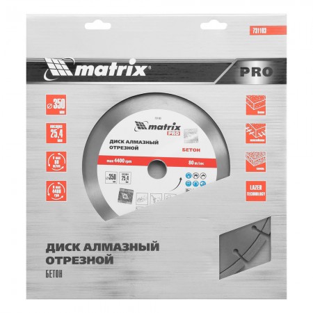 Диск алмазный 350 х 25.4 мм, "Железобетон", сухой/мокрый рез, Pro Matrix (731103)