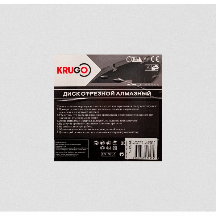 Диск алмазный для асфальта, лазерная сварка 500x25.4x40x4.0x10/15mm KRUGO (LAB20A)