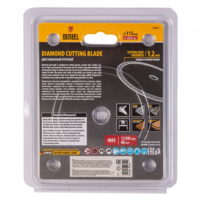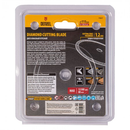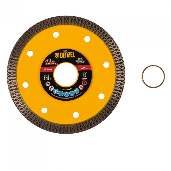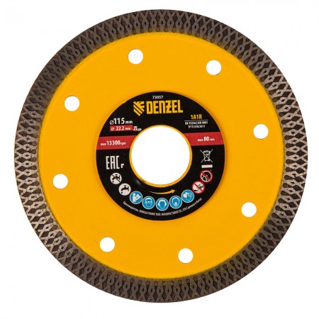 Диск алмазный отрезной 115 х 22,2мм, сплошной, супертонкий, горячий пресс, сухой/мокрый рез Denzel (73057)