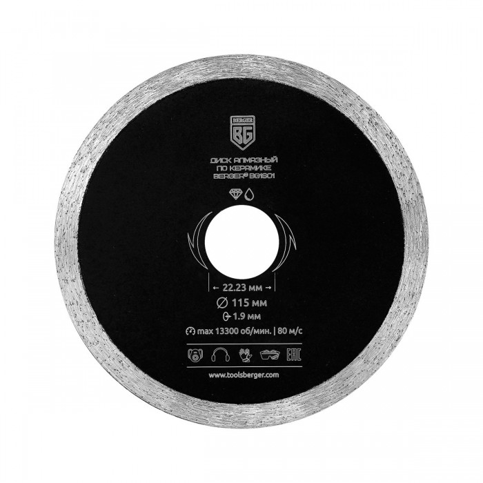 Диск алмазный отрезной по керамике (несегментный, 115x1.9x22.23 мм) BERGER BG1601