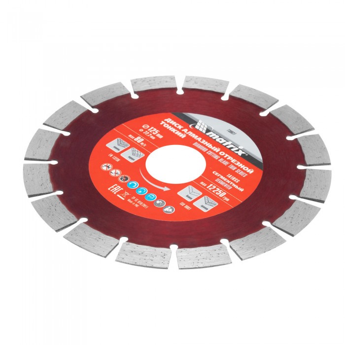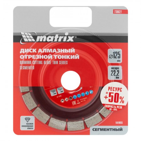 Диск алмазный, отрезной сегментный, 125 х 22.2 мм, тонкий, сухая резка Matrix Professional (730627)