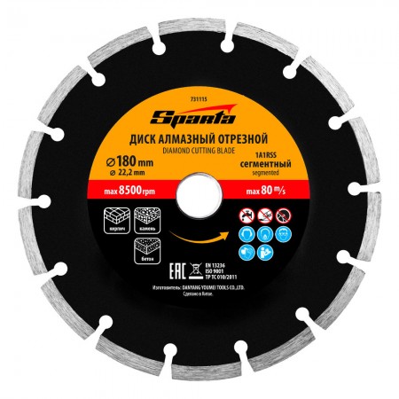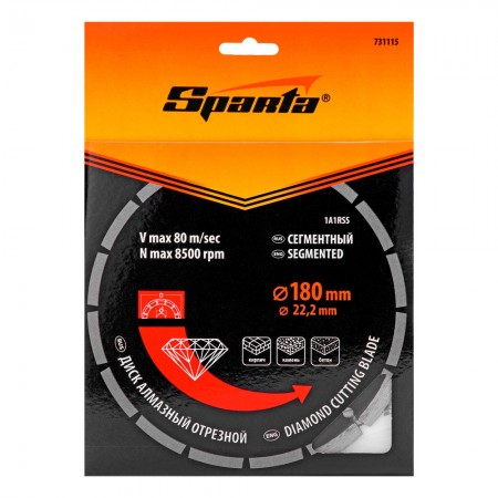 Диск алмазный, отрезной сегментный, 180 х 22.2 мм, сухая резка Sparta (731115)