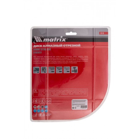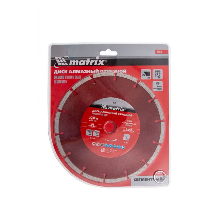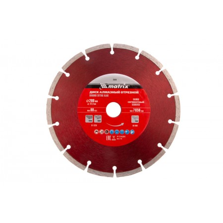 Диск алмазный, отрезной сегментный, 200 х 22.2 мм, сухая резка Matrix Professional (73176)