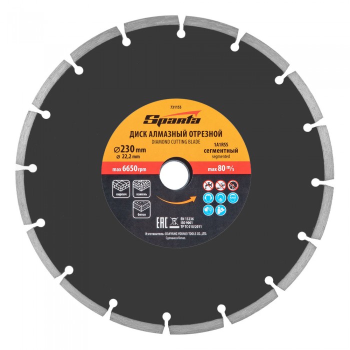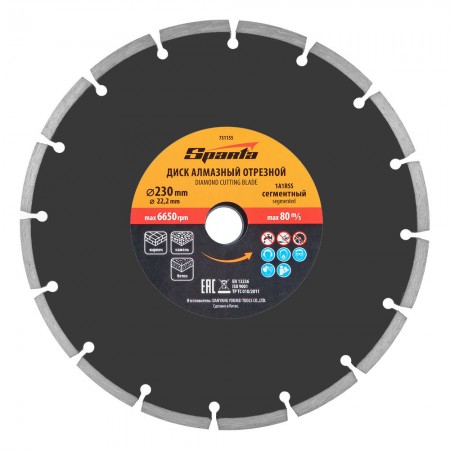 Диск алмазный, отрезной сегментный, 230 х 22.2 мм, сухая резка Sparta (731155)