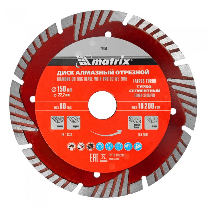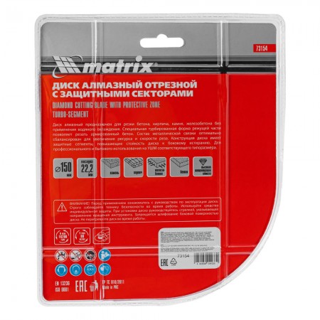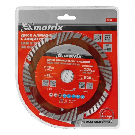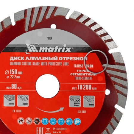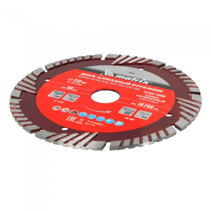 Диск алмазный, отрезной сегментный с защитными сект, 150 х 22.2 мм, сухая резка Matrix Professional (73154)
