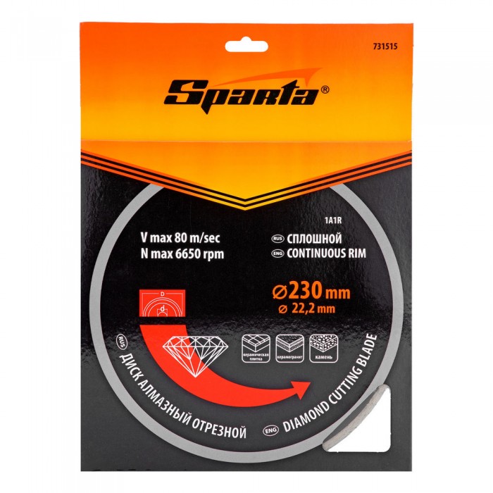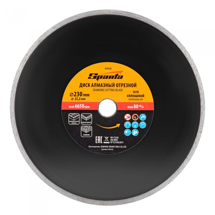 Диск алмазный, отрезной сплошной, 230 х 22.2 мм, мокрая резка Sparta (731515)