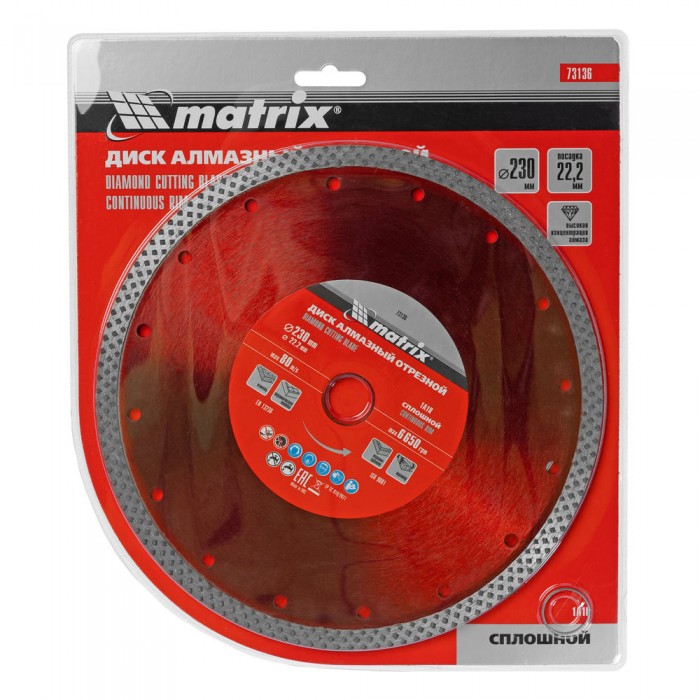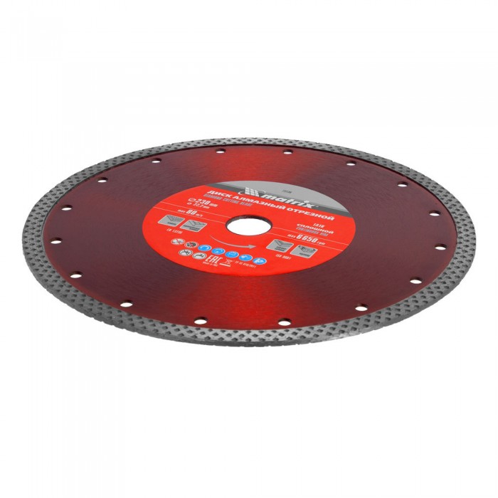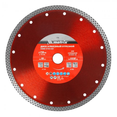 Диск алмазный, отрезной сплошной, 230 х 22.2 мм, сухая резка Matrix Professional (73136)