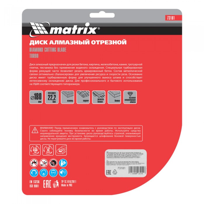 Диск алмазный, отрезной Turbo, 180 х 22.2 мм, сухая резка Matrix Professional (73181)