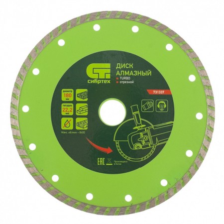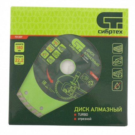 Диск алмазный, отрезной Turbo, 180 х 22.2 мм, сухая резка Сибртех (731337)
