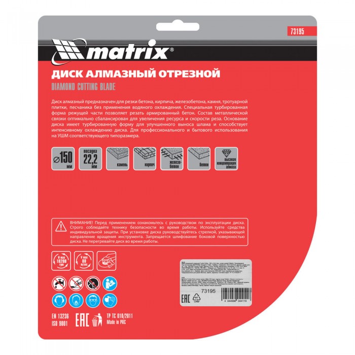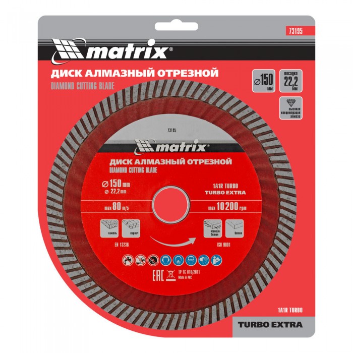 Диск алмазный, отрезной Turbo Extra, 150 х 22.2 мм, сухая резка Matrix Professional (73195)