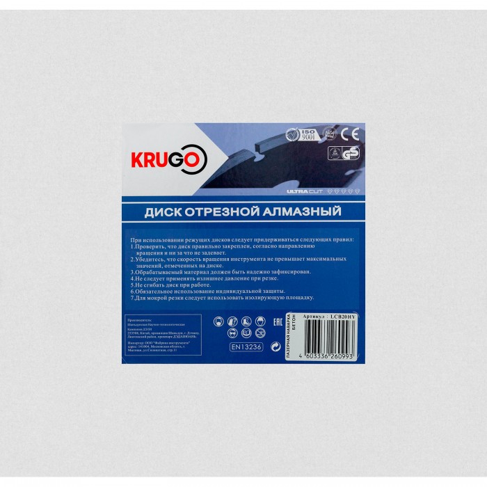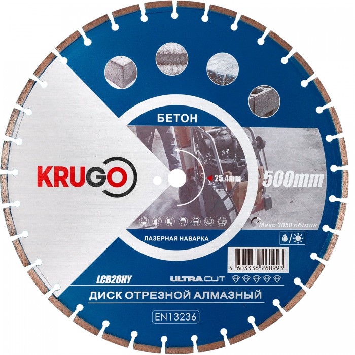 Диск алмазный по бетону, лазерная сварка 500x25.4x40x4,12x10mm KRUGO (LCB20HY)