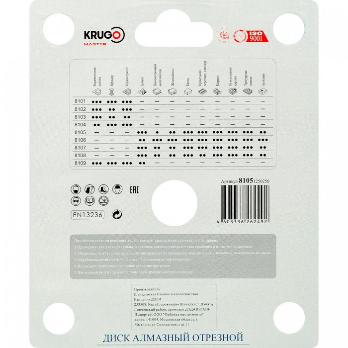 Диск алмазный сегментный по бетону PRO KRUGO MASTER 125х2,0х22,2х12 mm 81051250250