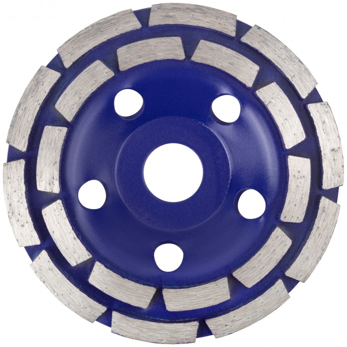 2 ряда сегментов. Посадочный диаметр 22,2 мм. Для работы по камню, кирпичу, бетону и мрамору. Материал: высокоуглеродистая сталь, режущая кромка содержит технические алмазы. Упаковка: двойной блистер.