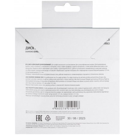 Диск алмазный шлифовальный по с кафелю/керамограниту/стеклу, посад. диам. 22,2 мм, сплошной, 125 мм (39523)