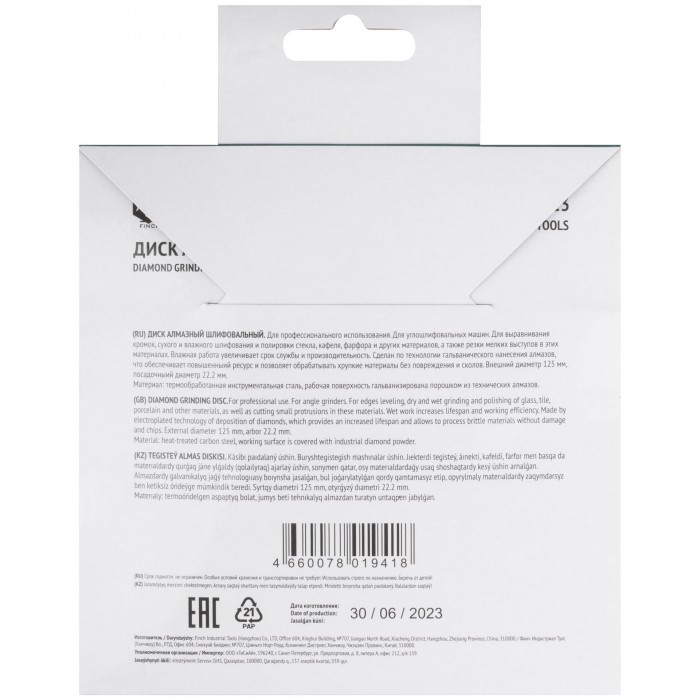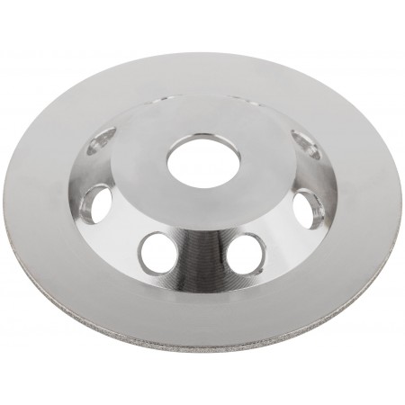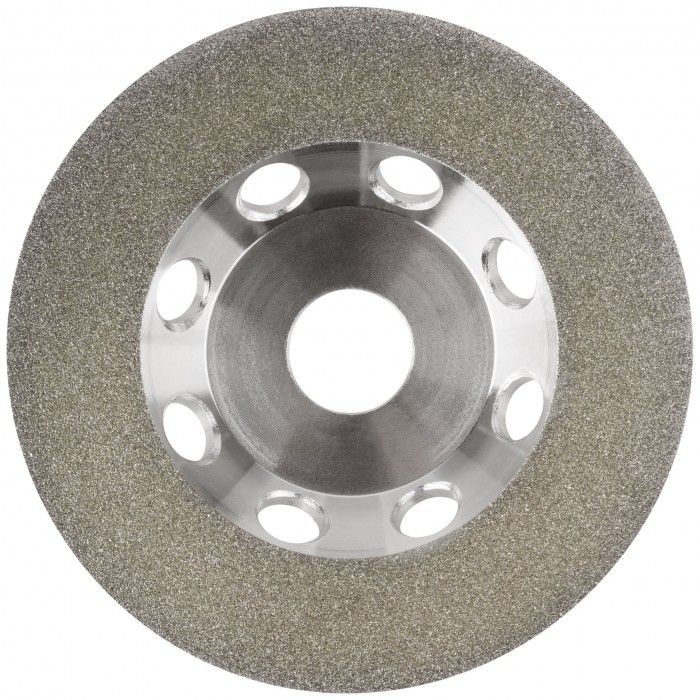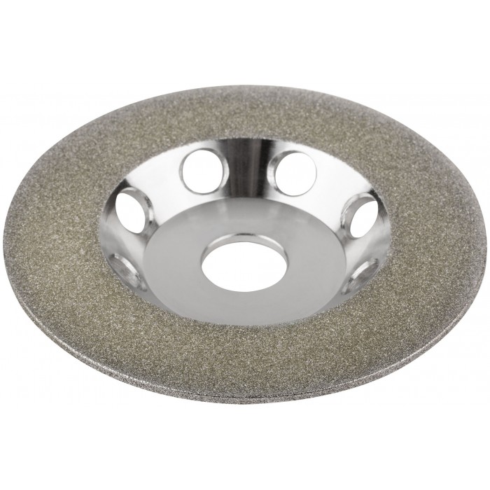 Для шлифования кромок стекла, кафеля, фарфора и др. Для углошлифовальных машин. Посадочный диаметр 22 мм. Материал: рабочая поверхность гальванизирована порошком из технических алмазов.
