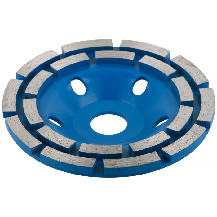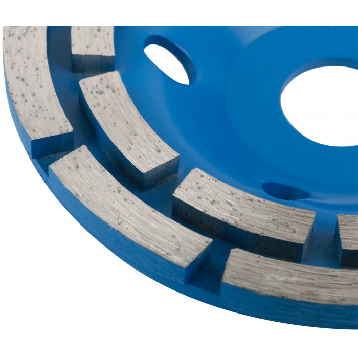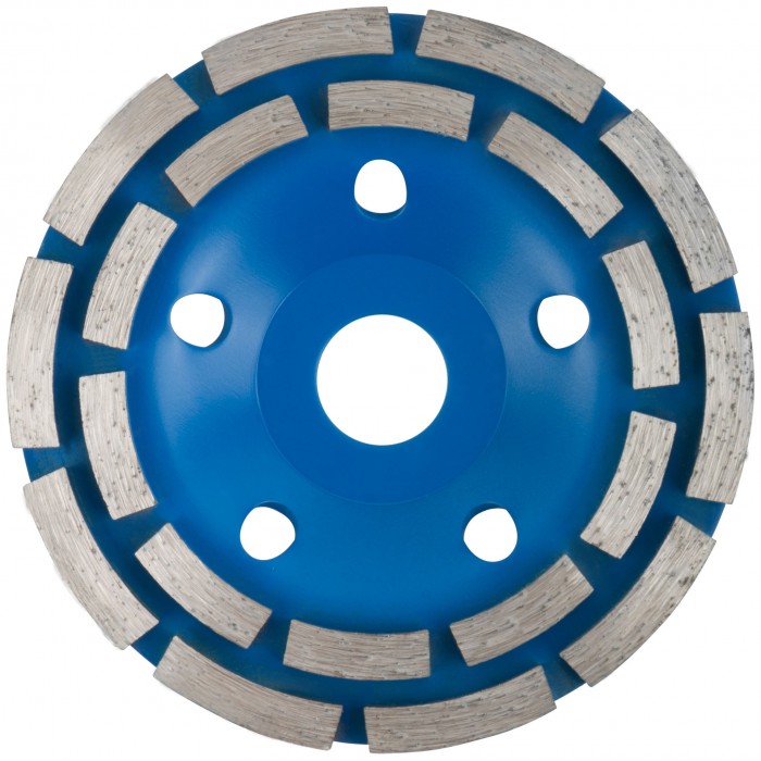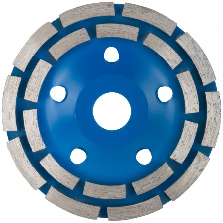 Сегментный. Двухрядный. Для использования с УШМ. Посадочный диаметр 22,2 мм. Для устранения неровностей, зачистки и шлифования кирпича, бетона, мрамора, гранита и других твердых материалов. Материал: инструментальная сталь, режущая кромка-расплав с техническими алмазами. Уп: картонная коробка.