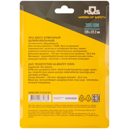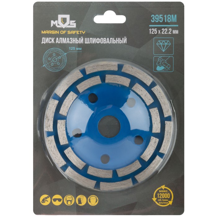 Диск алмазный шлифовальный, посадочный диаметр 22,2 мм, два ряда сегментов 125 мм (39518М)