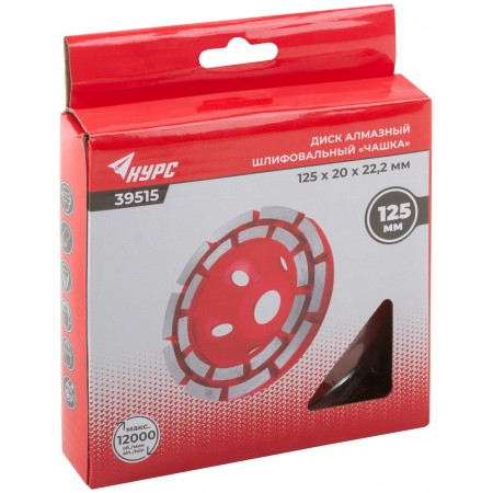 Диск алмазный шлифовальный, посадочный диаметр 22,2 мм, сегментный, двойной ряд 125 мм (39515)