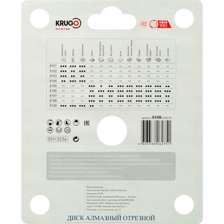Диск алмазный сплошной 10 KRUGO MASTER 125х1,8х22,2х10 mm 81081250276