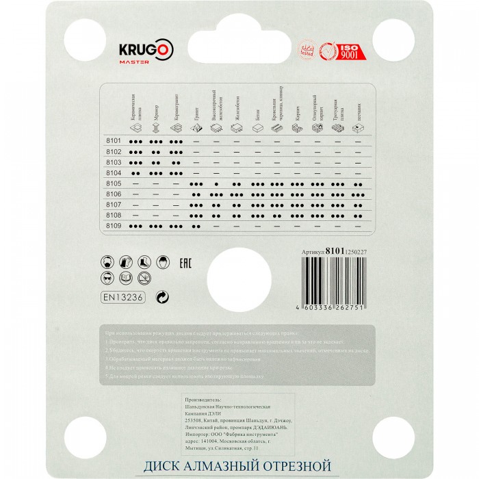 Диск алмазный сплошной по керамограниту, керамике KRUGO MASTER 125х1.1х22.23х8 mm 81011250227