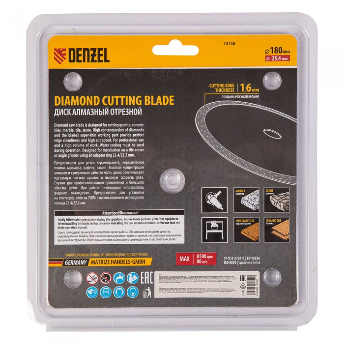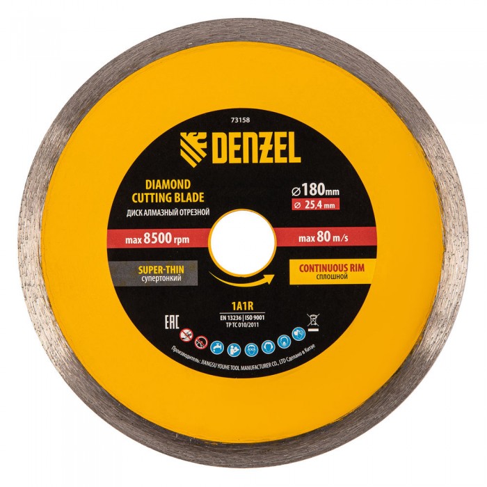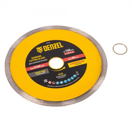 Диск алмазный сплошной, супертонкий, 180 х 25,4 мм, горячее прессование, мокрое резание Denzel (73158)