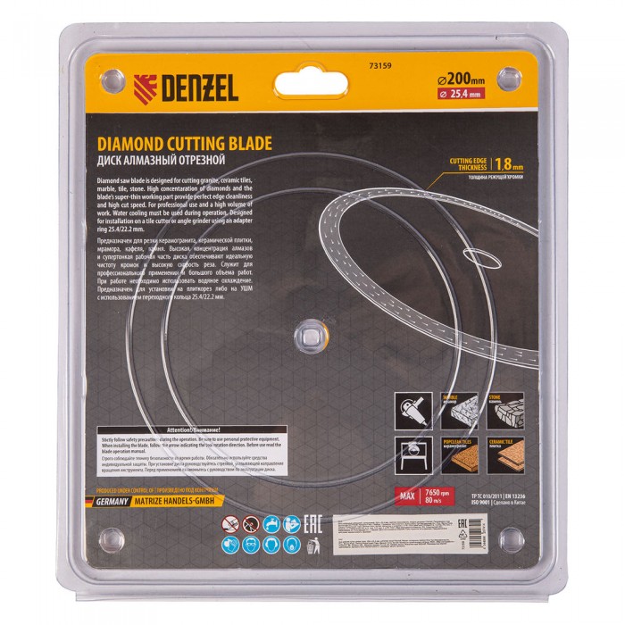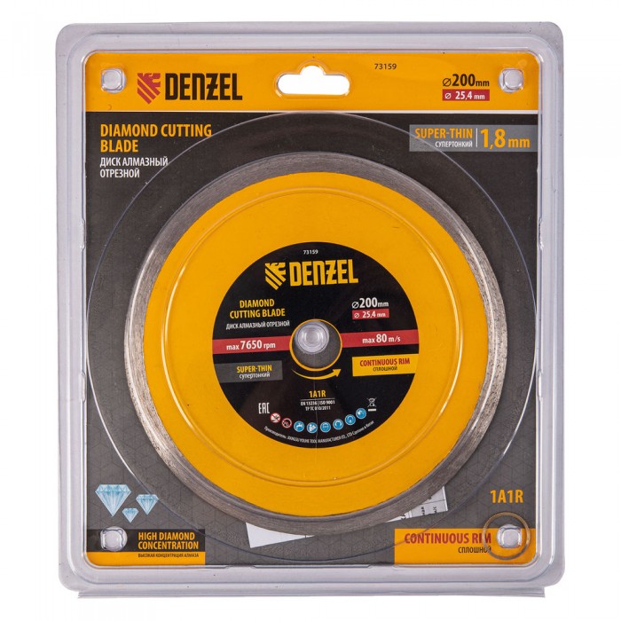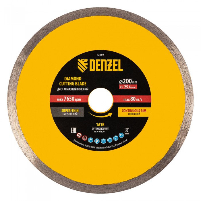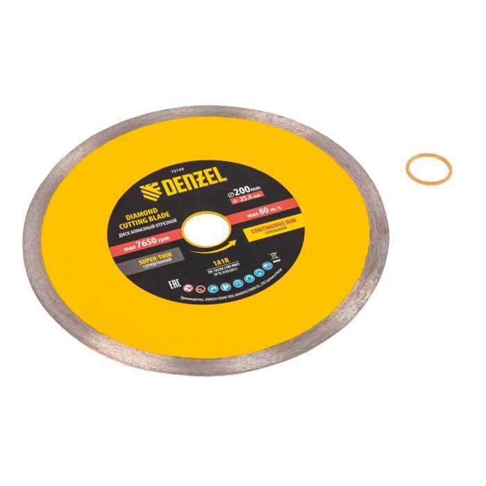Диск алмазный сплошной, супертонкий, 200 х 25,4 мм, горячее прессование, мокрое резание Denzel (73159)