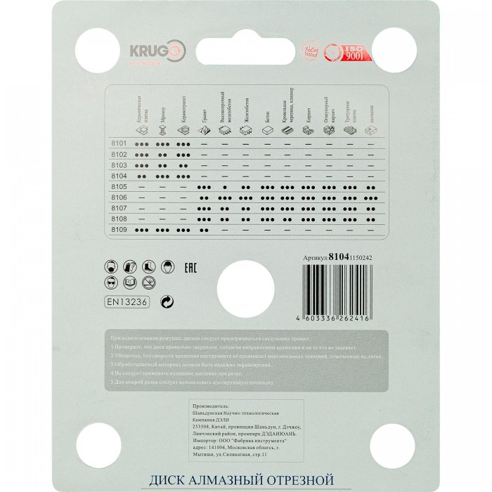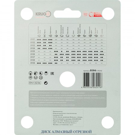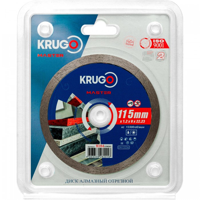 Диск алмазный сплошной ультратонкий KRUGO MASTER 115х1,2х22,2х8 mm 81041150242