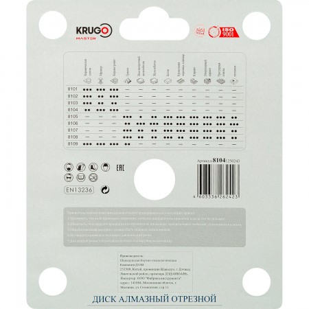 Диск алмазный сплошной ультратонкий KRUGO MASTER 125х1,2х22,2х8 mm 81041250243