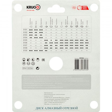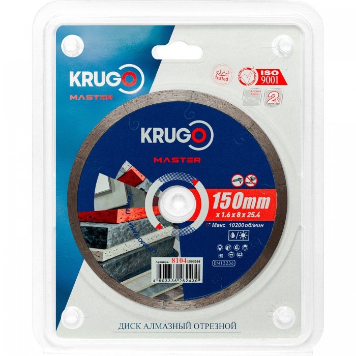 Диск алмазный сплошной ультратонкий KRUGO MASTER 150х1,6х22,2х8 mm 81041500244