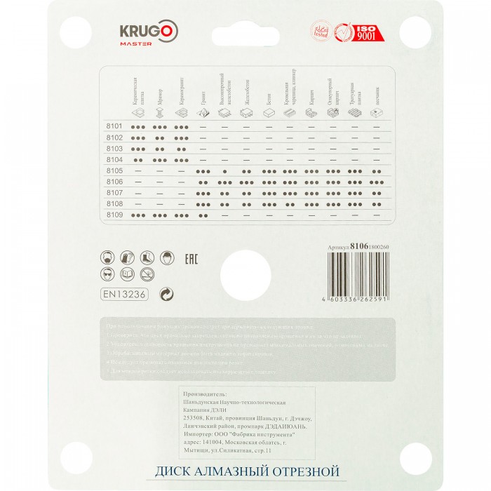 Диск алмазный Турбо по железобетону KRUGO MASTER 180х2,4х22,2х12 mm 81061800260