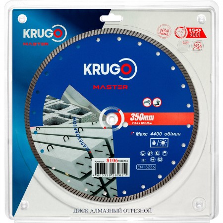 Диск алмазный Турбо по железобетону KRUGO MASTER 350х3,0х25,4х12 mm 81063500263