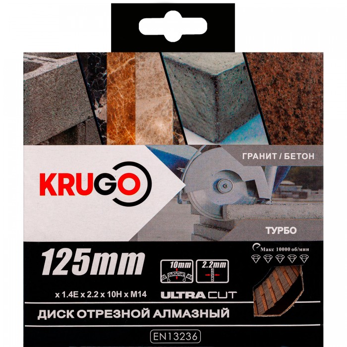 Диск алмазный Турбо с фланцем по граниту 125 x 1,4Е x 2,2 x 10Н x М14 KRUGO (RTB05AM14 )