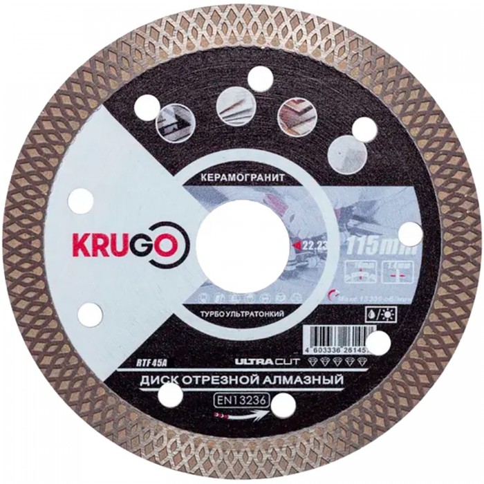 Диск алмазныйТурбо ТF Ультратонкий по керамике для УШМ 115 x 1.4 x 22.23 x 10mm KRUGO (RTF45A)
