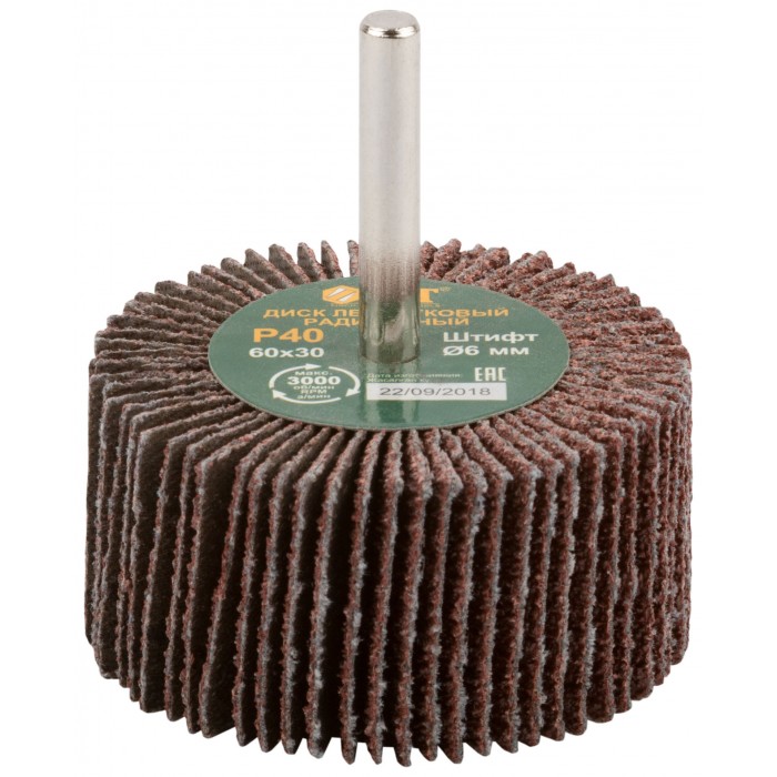 Диск лепестковый для дрели радиальный 60х30х6 мм Р 40 (39572)