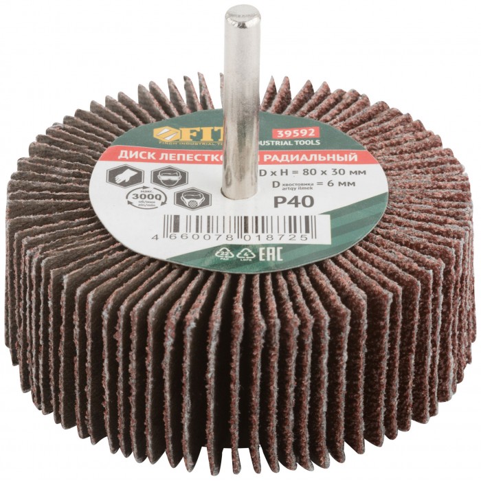 Диск лепестковый для дрели радиальный 80х30х6 мм Р 40 (39592)