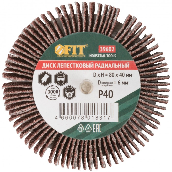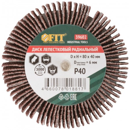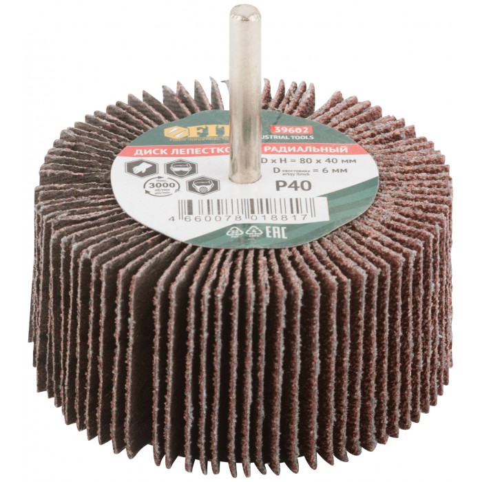 Диск лепестковый для дрели радиальный 80х40х6 мм Р 40 (39602)
