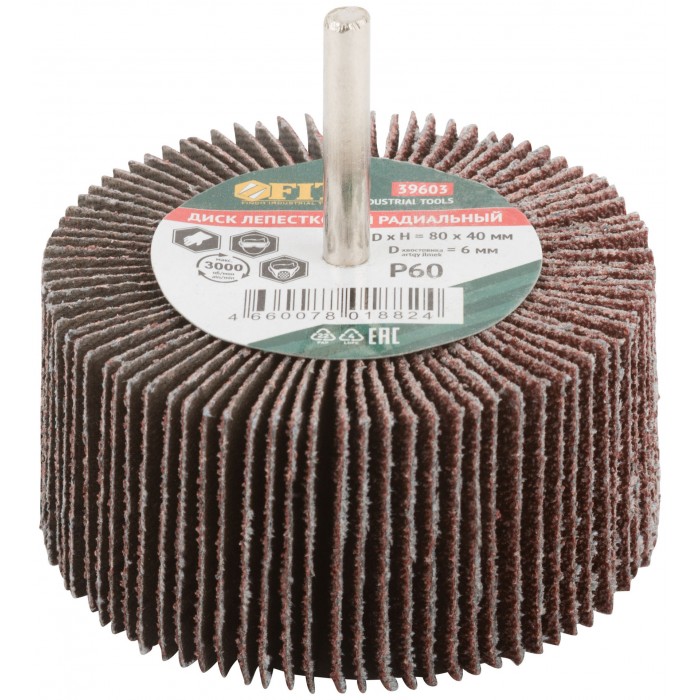 Диск лепестковый для дрели радиальный 80х40х6 мм Р 60 (39603)