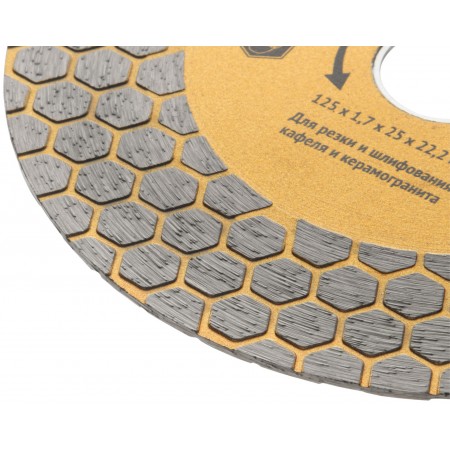 Диск отрезной / шлифовальный алмазный (сухая и влажная резка) 125х1,7х25х22,2 мм (37441)