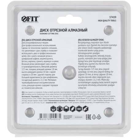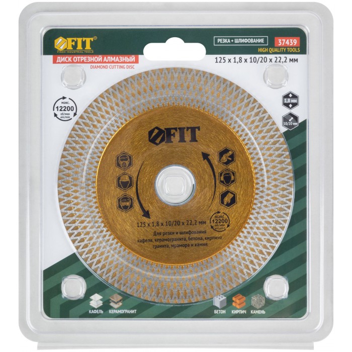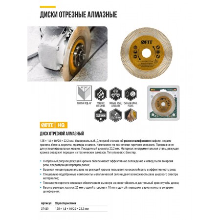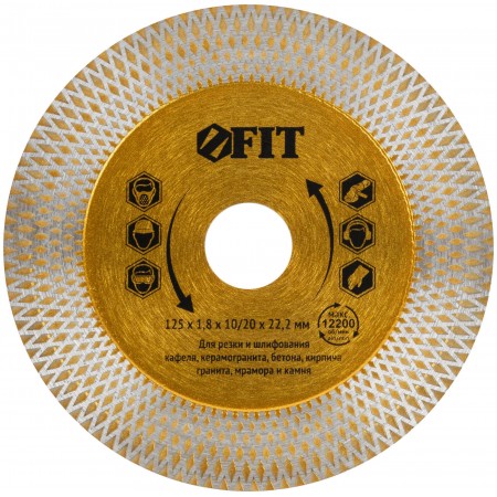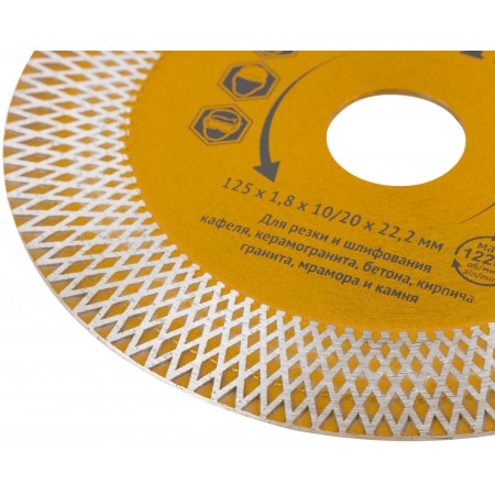 Диск отрезной / шлифовальный алмазный (сухая и влажная резка) 125х1,8х10/20х22,2 мм (37439)