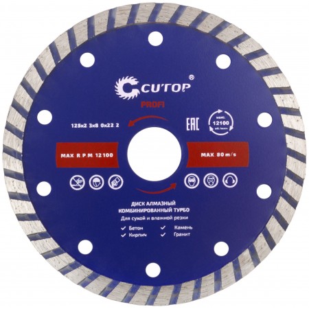 Диск отрезной алмазный комбинированный турбо Cutop Profi, 125 x 2,3 x 8,0 x 22,2 мм (61-12523)