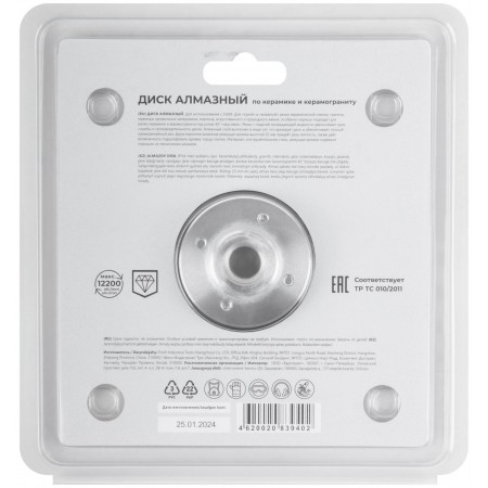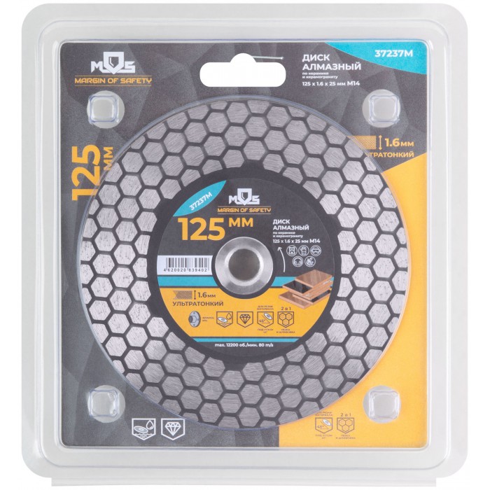 Диск отрезной алмазный по керамике и керамограниту 125 х 1.6 х 25 мм, фланец М14 (37237М)