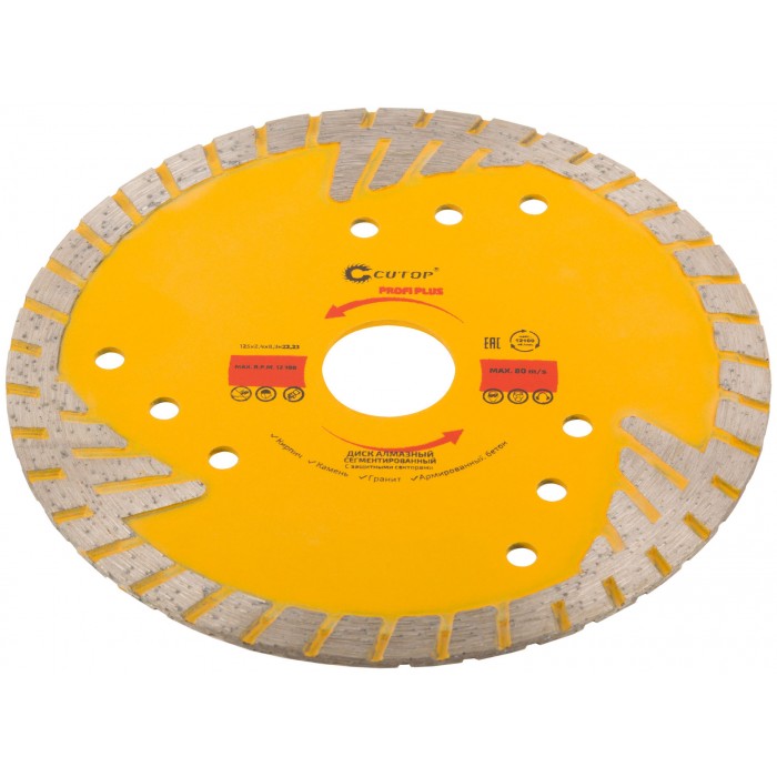 Диск отрезной алмазный, сегментный с защитными секторами CUTOP Profi Plus, 125 x 2.4 x 8.3 x 22.2 мм (67-415)