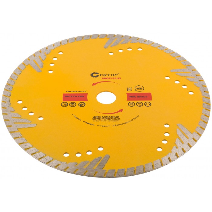 Диск отрезной алмазный, сегментный с защитными секторами CUTOP Profi Plus, 230 x 3.0 x 8.3 x 22.2 мм (67-416)