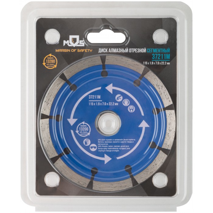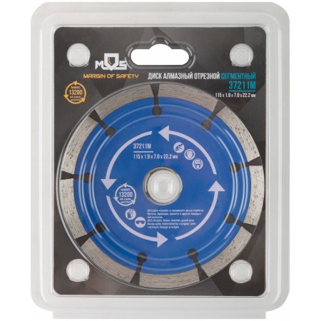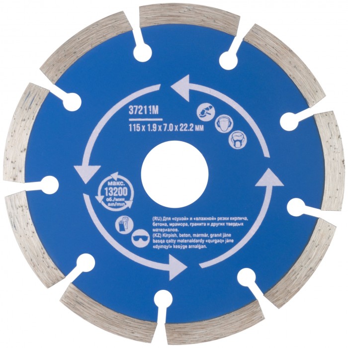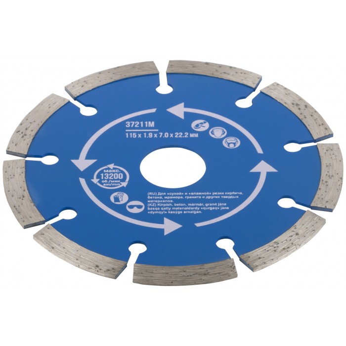 Диск отрезной алмазный сегментный (сухая и влажная резка) 115 х 1,9 х 7 х 22,2 мм (37211М)