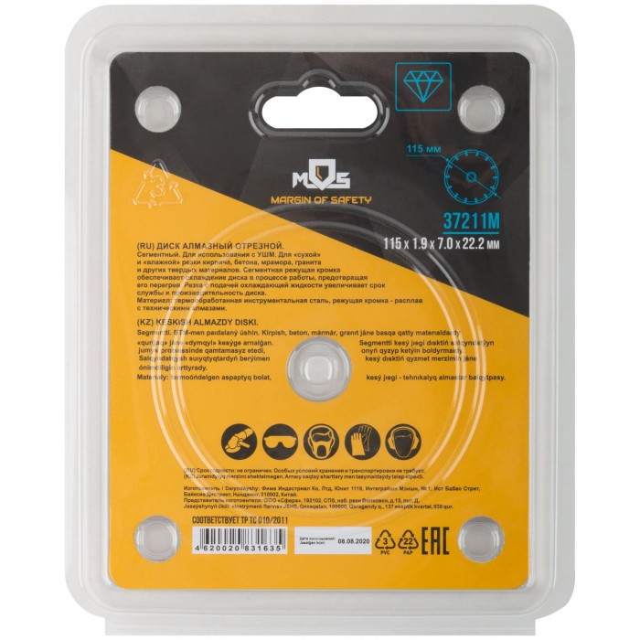 Сегментный. Для использования с УШМ . Посадочный диаметр 22,2мм. Для ''сухой'' и ''влажной''резки кирпича, бетона, мрамора,гранита и других твердых материалов. Сегментная режущая кромка обеспечивает охлаждение диска в процессе работы, предотвращая его перегрев. Материал: инструментальная сталь, режущая кромка-расплав с техническими алмазами. Уп: Блистер