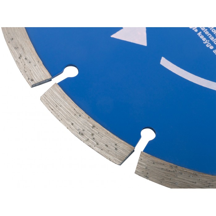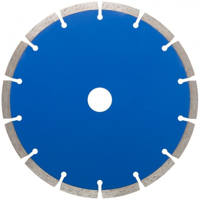 Сегментный. Для использования с УШМ . Посадочный диаметр 22,2мм. Для ''сухой'' и ''влажной''резки кирпича, бетона, мрамора,гранита и других твердых материалов. Сегментная режущая кромка обеспечивает охлаждение диска в процессе работы, предотвращая его перегрев. Материал: инструментальная сталь, режущая кромка-расплав с техническими алмазами. Уп: Блистер