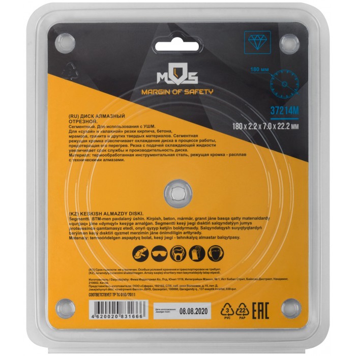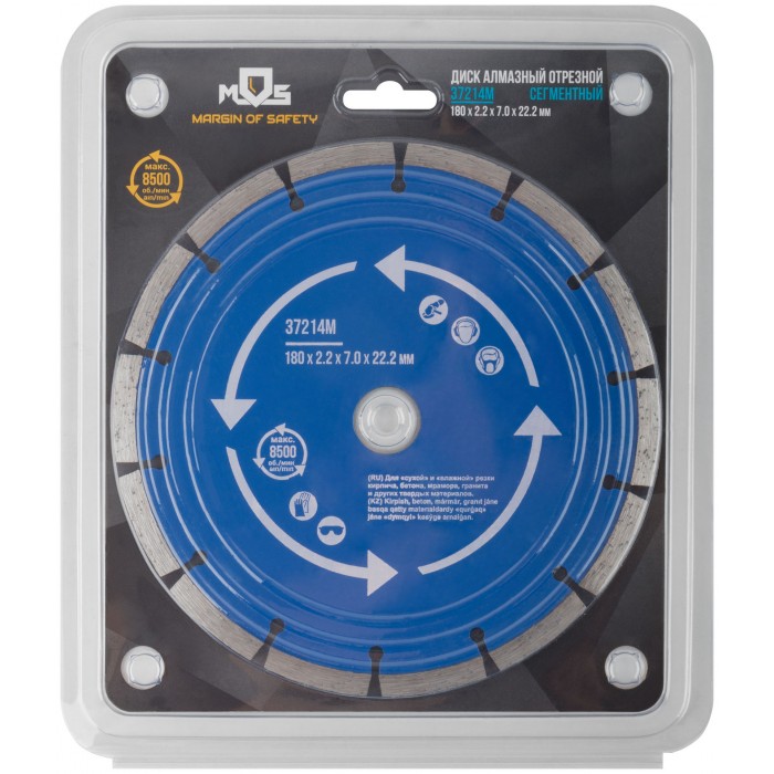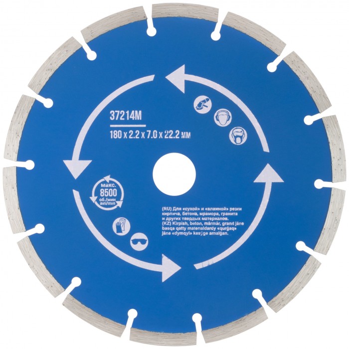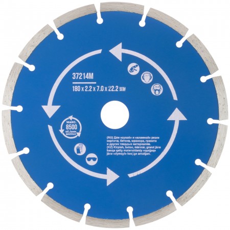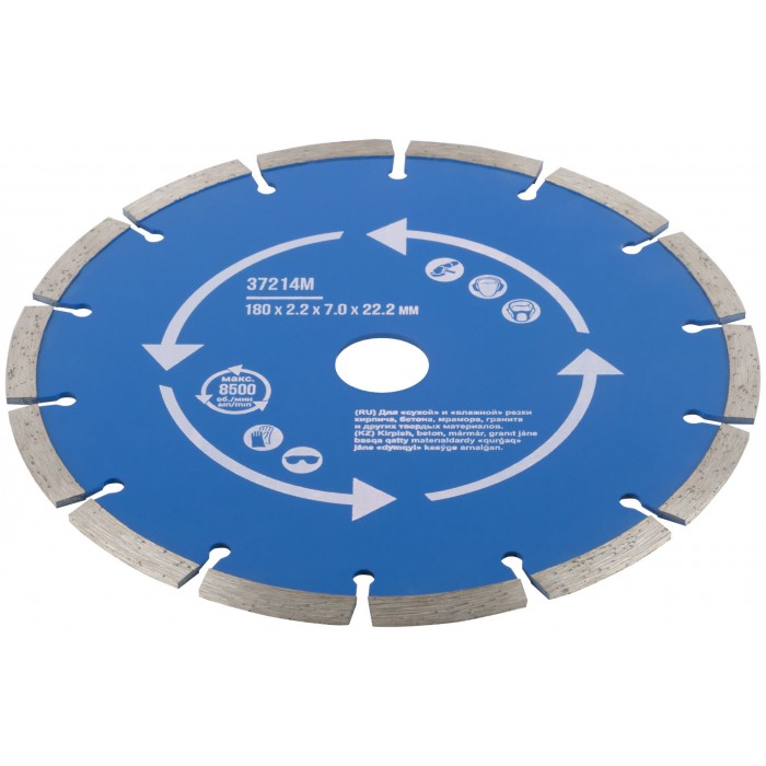 Диск отрезной алмазный сегментный (сухая и влажная резка) 180 х 2,2 х 7 х 22,2 мм (37214М)